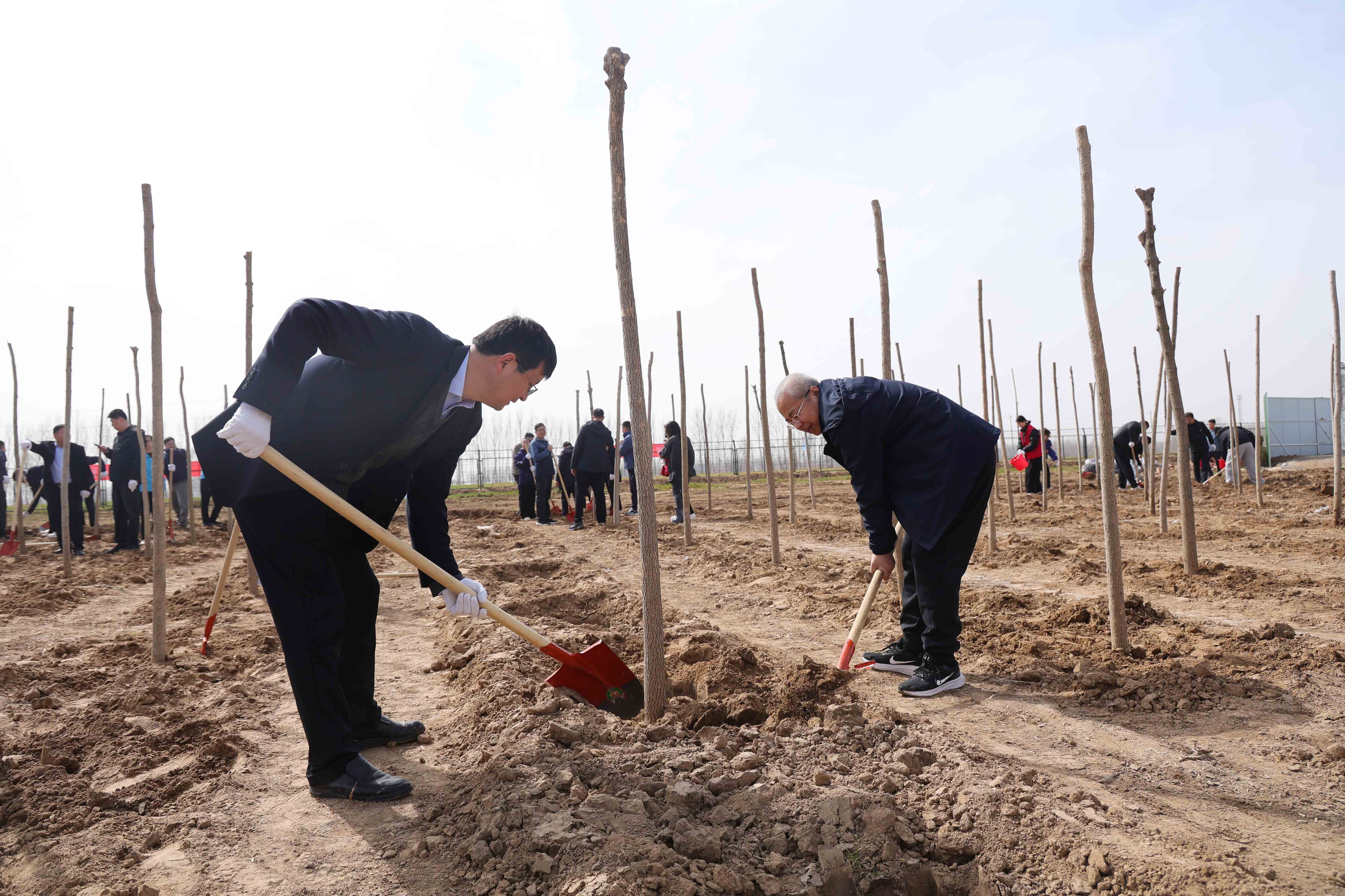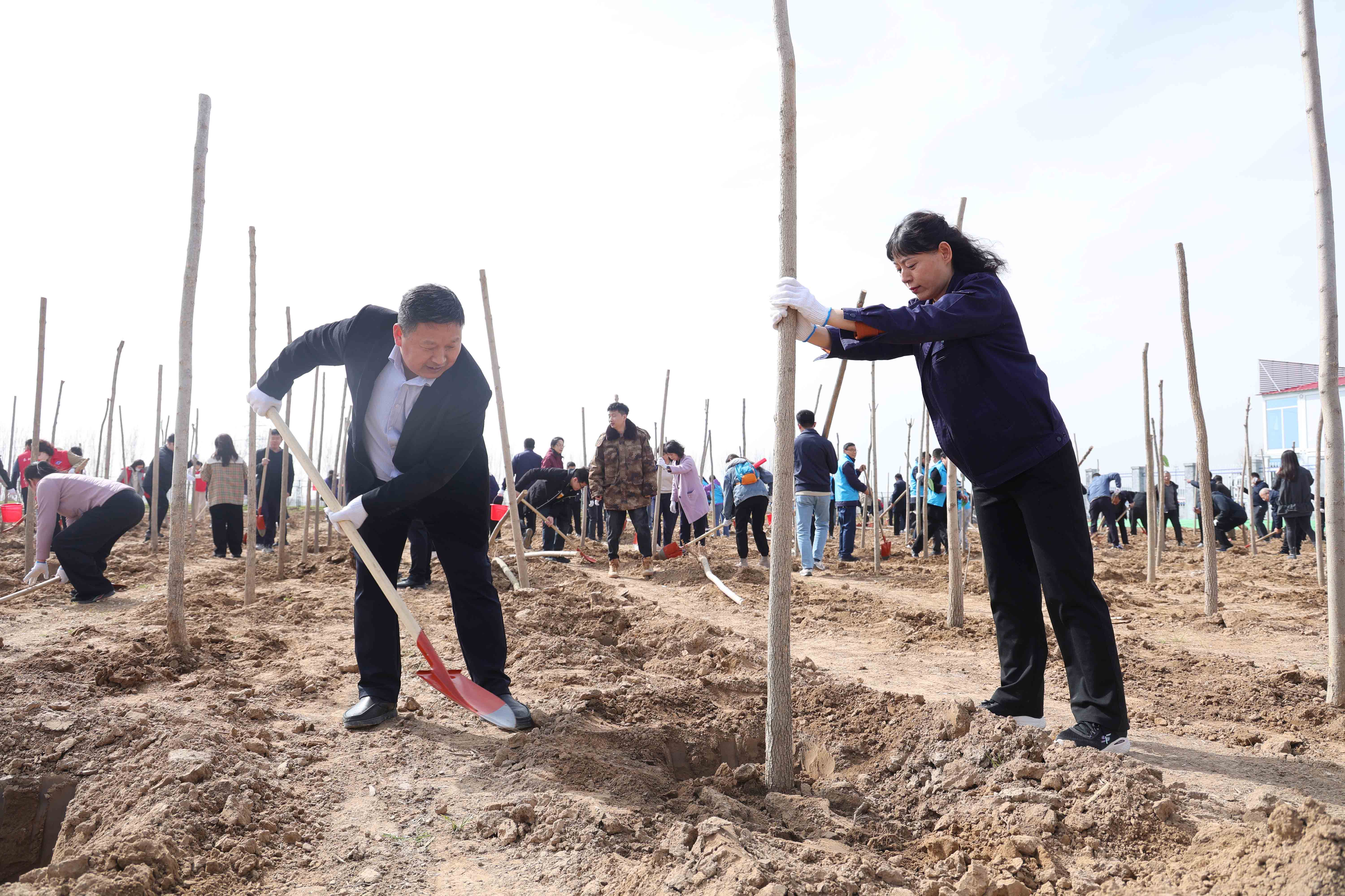 开幕仪式结束后,200余名干部职工挖土、扶苗、培土,动作娴熟有序,与周边为水库清基的工程机械遥相呼应。本次活动共栽植白蜡树苗500余株。此次活动通过政企联动模式,将工程建设与生态建设有机结合,既以实际行动弘扬了“植绿、护绿、爱绿”生态文明新风尚,也为太平水库增添了绿色底蕴。