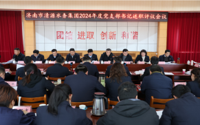 2月25日,集团党委组织2024年度党支部书记全面从严治党述责述廉和抓基层党建工作述职评议。会议由党委书记、董事长魏长学主持,城投集团党务工作部副部长赵鹏到会指导。公司党委和领导班子成员、各党支部书记、相关部室负责人、部分党员干部及群众代表共40余人参加会议。会上,玉清湖党支部、鹊山党支部、东郊党支部三个支部书记分别就全面从严治党述责述廉进行了现场述职,西郊党支部、长孝党支部、白云党支部三个支部书